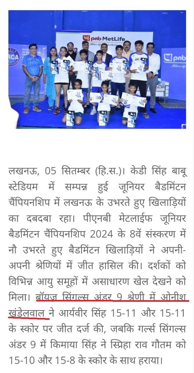 PNB METLIFE JUNIOR BADMINTON CHAMPIONSHIP-2024.